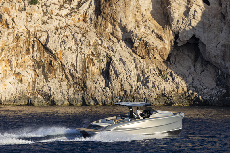 NEW 2023! Solaris Power 40 for rent in Ibiza, the newest and most beautiful boat for rent in the Balearic Islands. The quality of Solaris Power is based on its iconic design, and it is endowed with a strong personality and the best navigation features. Never has a 40′ length offered so much! Includes anti-jellyfish pool, snorkel and churros. Skipper and mandatory final cleaning included. Security deposit: €2,500